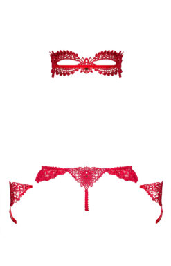 - Marzy Ci się wieczór pełen miłosnych uniesień? Skuś się na komplet Hetea w kolorze soczystej, intensywnej czerwieni, a na sam widok zrobi Ci się gorąco! Maska zdobiona biżuteryjnym elementem doda tajemniczości, rękawiczki – elegancji, a dzięki stringom o odważnym kroju będzie wyjątkowo pikantnie! Kiedy na własnej skórze poczujesz miękkość delikatnej koronki… zakochasz się w Hetea od pierwszego założenia.