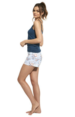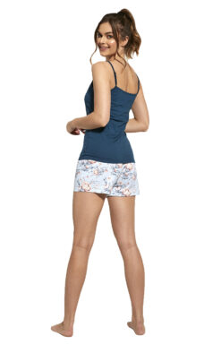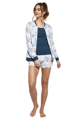 - Trzyczęściowa bawełniana piżama damska o kwiatowym wzorze.