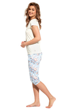 • Spodnie o długości 3/4 z kwiecistym wzorem zakończone ściągaczem.