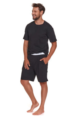 - Czarna piżama z krótkim rękawem oraz krótkimi spodenkami.