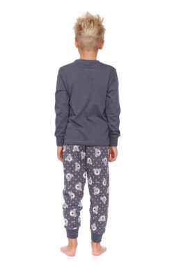 - Szara koszula z drobnym misiem na piersi, rękawy zakończone ściągaczami.