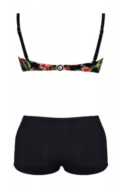 - Majteczki w komplecie to ładnie skrojone szorty z ozdobnym marszczonym pasem z przodu wykończone podszewką. Tył gładki czarny.