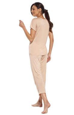 - Komplet składa się z koszulki z rękawem 3/4 oraz spodni 3/4.