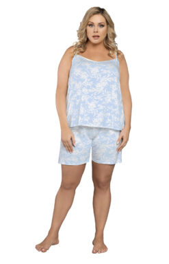 - Komplet składa się z koszulki na ramiączkach oraz krótkich spodenek.