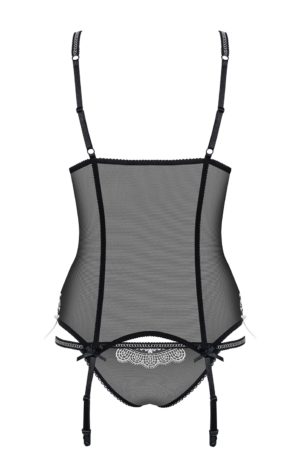 - Niewiarygodnie seksowny i maksymalnie zmysłowy. Dasz się skusić na ten gorący gorsecik? Czarna siateczka z białymi zdobieniami i uwodzicielskie paseczki do pończoch będą wyjątkowo zachęcającym zaproszeniem na rozkoszny wieczór we dwoje!