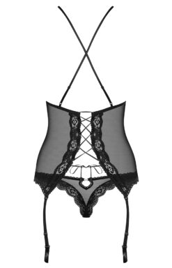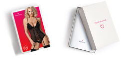 - Mówisz, masz! Przed Tobą maksymalnie kuszący zestaw, który obowiązkowo musi znaleźć się w Twojej garderobie – zjawiskowy gorset i zniewalające majteczki. Chcesz, by był jeszcze bardziej seksowny? Dobierz zmysłowe pończochy i… przygotuj się na totalnie wyjątkowe chwile we dwoje po brzegi wypełnione przyjemnością!