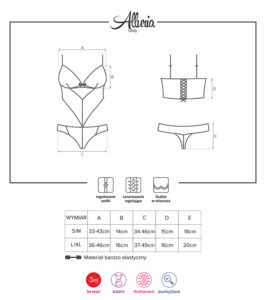 • Bielizna w zjawiskowym fasonie sprawi, że on oszaleje z zachwytu! Chcesz zobaczyć to w jego spojrzeniu? Załóż obłędne body Alluria! Seksowna koronka o zjawiskowym kroju będzie jedną z Twoich ulubionych kreacji. Pozwól mu pociągnąć wstążeczkę na Twoich plecach. Tak zacznie się Wasza pikantna zabawa!