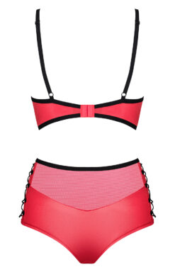 • Zmysłowy komplet dodający pazurka? Leatheria! Teraz już nie tylko w wersji czarnej. Odważne, kontrastowe połączenie czerwieni i czarnych detali daje prawdziwy efekt „wow”. Płonąca czerwień rozpala zmysły, a czarne paski podkreślają „strategiczne” miejsca 😉 Szorty z wysokim stanem świetnie eksponują apetyczne krągłości sylwetki. Biustonosz z niepowtarzalnym łączeniem miseczek z ramiączkami skutecznie przykuwa wzrok. Komplet idealny – wyjątkowy, tak jak Ty! Spraw sobie prezent, a jemu nieprzeciętną niespodziankę.