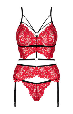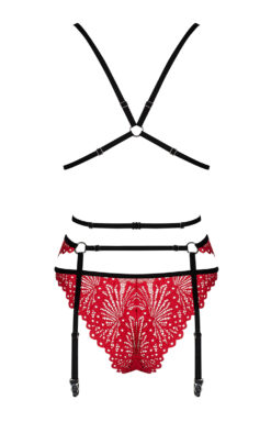 - zniewalający komplet Mettia: seksowny pas do pończoch, biustonosz i pasujące majteczki