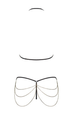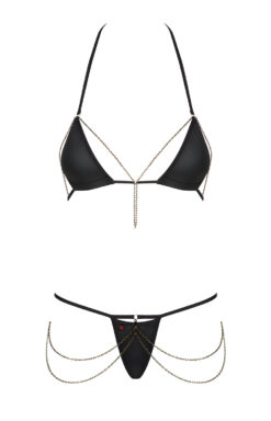- komplet zawiera biustonosz, stringi i ozdobne łańcuszki