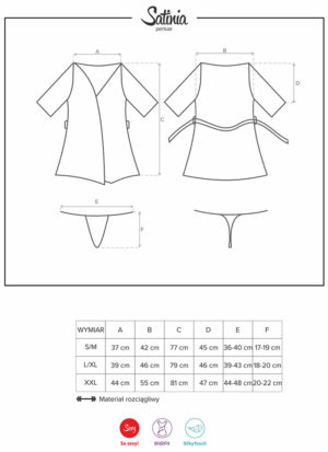 - Wiązany szerokim satynowym paskiem – łatwo dopasować do sylwetki i łatwo zdjąć!
