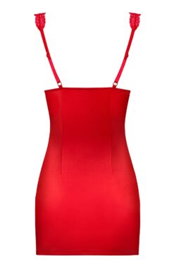 - czerwona, satynowa koszulka idealnie układa się na ciele