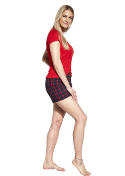 - Koszulka w kolorze czerwonym z krótkimi rękawkami.