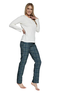- Klasyczna piżama damska z długim rękawem i długimi spodniami.