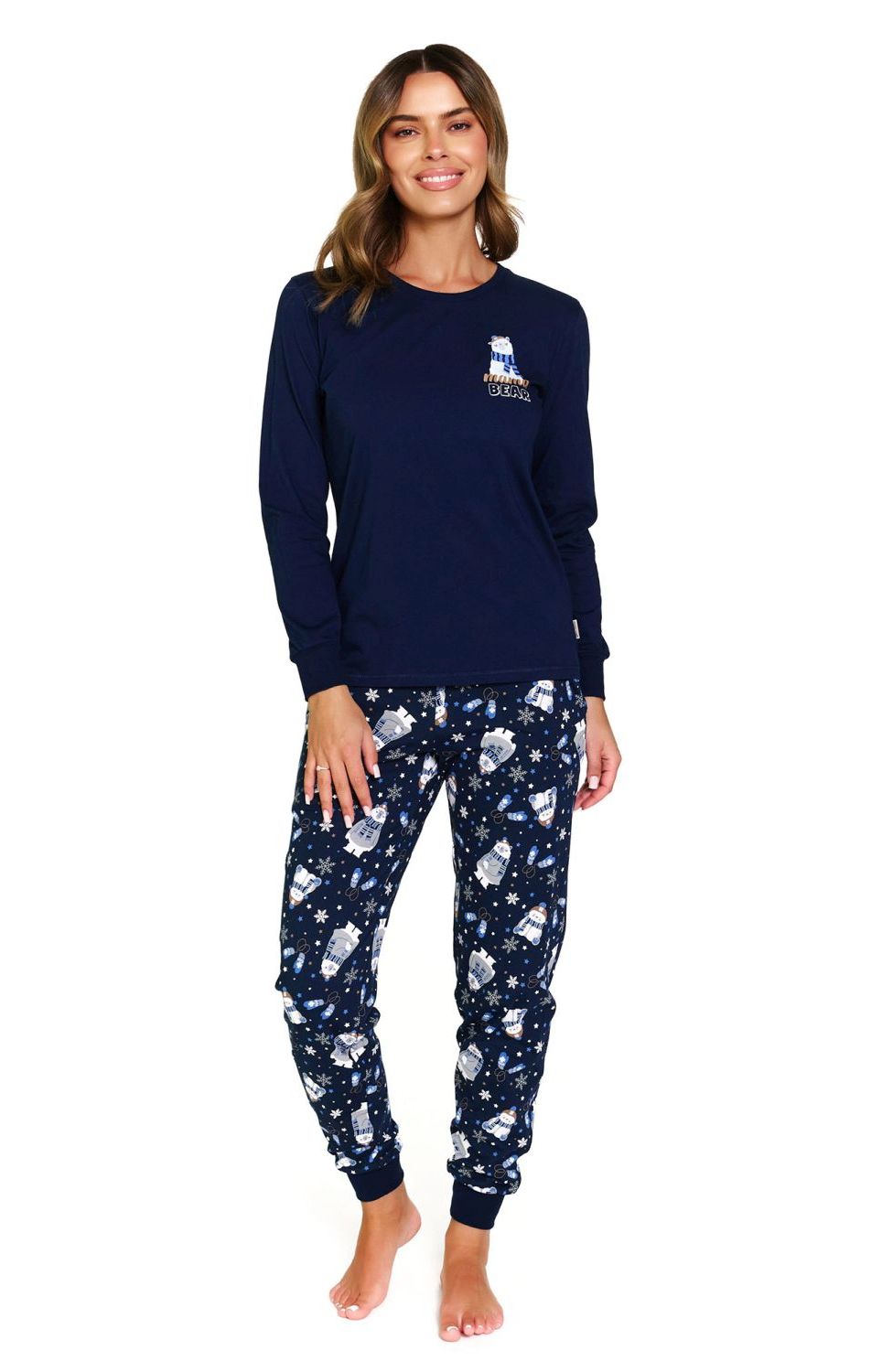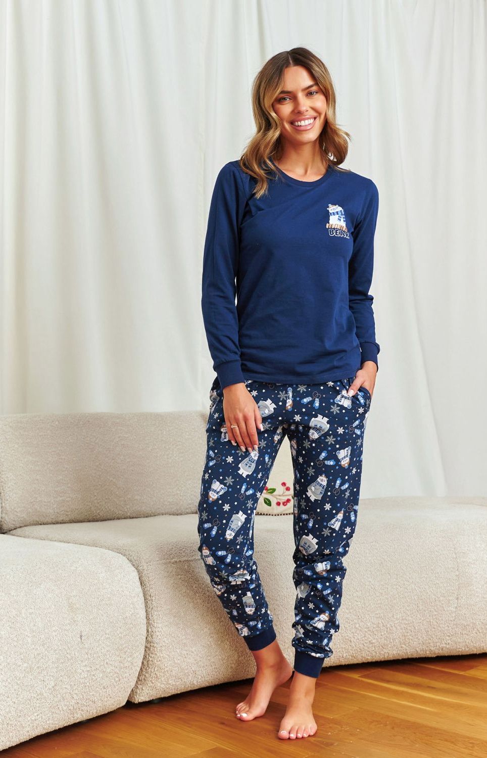 - Długa piżama damska w urocze misie z zimowymi akcentami.