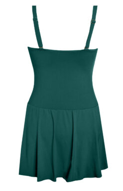- Atrakcyjny jednoczęściowy kostium kąpielowy o fasonie sukienki połączony z figami.