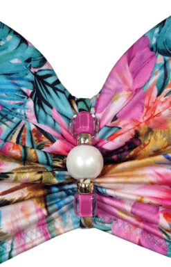 - Biustonosz typu bardotka na fiszbinach posiada usztywnione miseczki, które dobrze kształtują i utrzymują biust oraz dodatkowe wyjmowane wkładki push-up, pięknie powiększające biust o rozmiar.