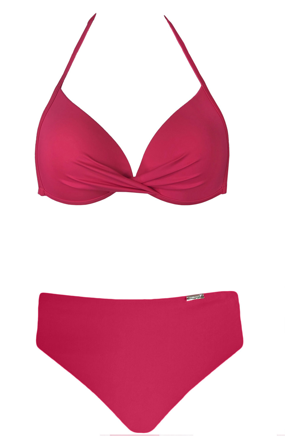 - W komplecie klasycznie skrojone figi o wysokim stanie, optycznie wyszczuplają brzuszek i jednocześnie podkreślają talię.