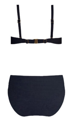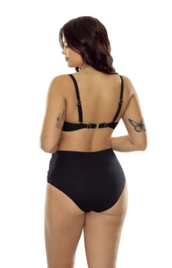 - W komplecie klasycznie skrojone figi o podwyższonym stanie, optycznie wyszczuplają brzuszek i jednocześnie podkreślają talię.