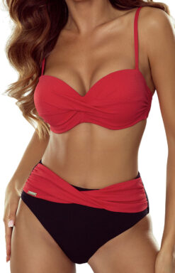 - Biustonosz typu bardotka na fiszbinach posiada usztywnione miseczki, które dobrze kształtują i utrzymują biust oraz dodatkowe wyjmowane wkładki push-up, pięknie powiększające biust o rozmiar.