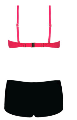 - Majtki w komplecie to ładnie skrojone szorty z ozdobnym marszczonym pasem z przodu wykończone z przodu podszewką. Tył gładki.