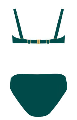 - Majtki w komplecie to pełne figi o średnim stanie lekko marszczone po bokach, wykończone delikatną podszewką.