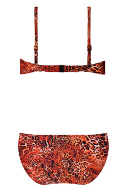 - Biustonosz typu bardotka na fiszbinach posiada usztywnione miseczki, które dobrze kształtują i utrzymują biust oraz dodatkowe wyjmowane wkładki push-up, pięknie powiększające biust o rozmiar.