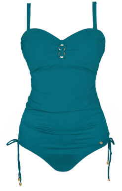 - Kostium na bokach ściągany delikatnymi troczkami, co pozwana na regulacje wysokości boku.