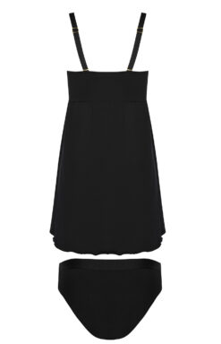 - Atrakcyjny dwuczęściowy kostium kąpielowy o fasonie tankini składający się z koszulki oraz fig.